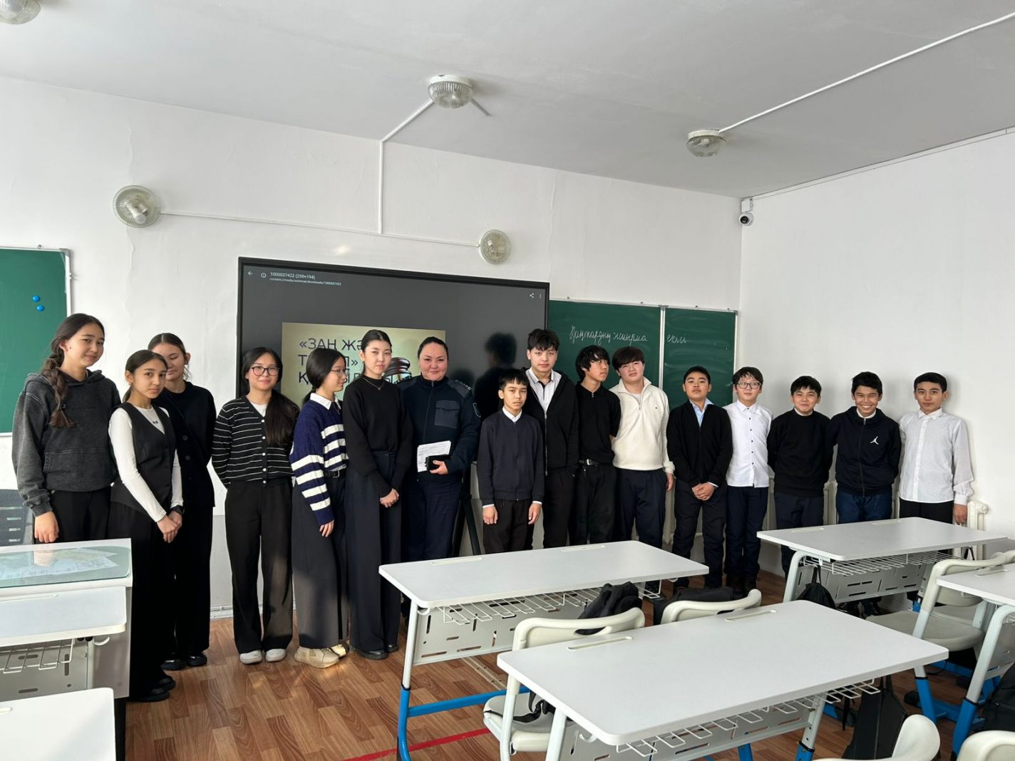 Мектебіміздің 8 «Б» сыныбында «Жастардың басты құндылығы – тәртіп пен жауапкершілік» тақырыбында мектеп инспекторының қатысуымен мазмұнды құқықтық сағат өтті.