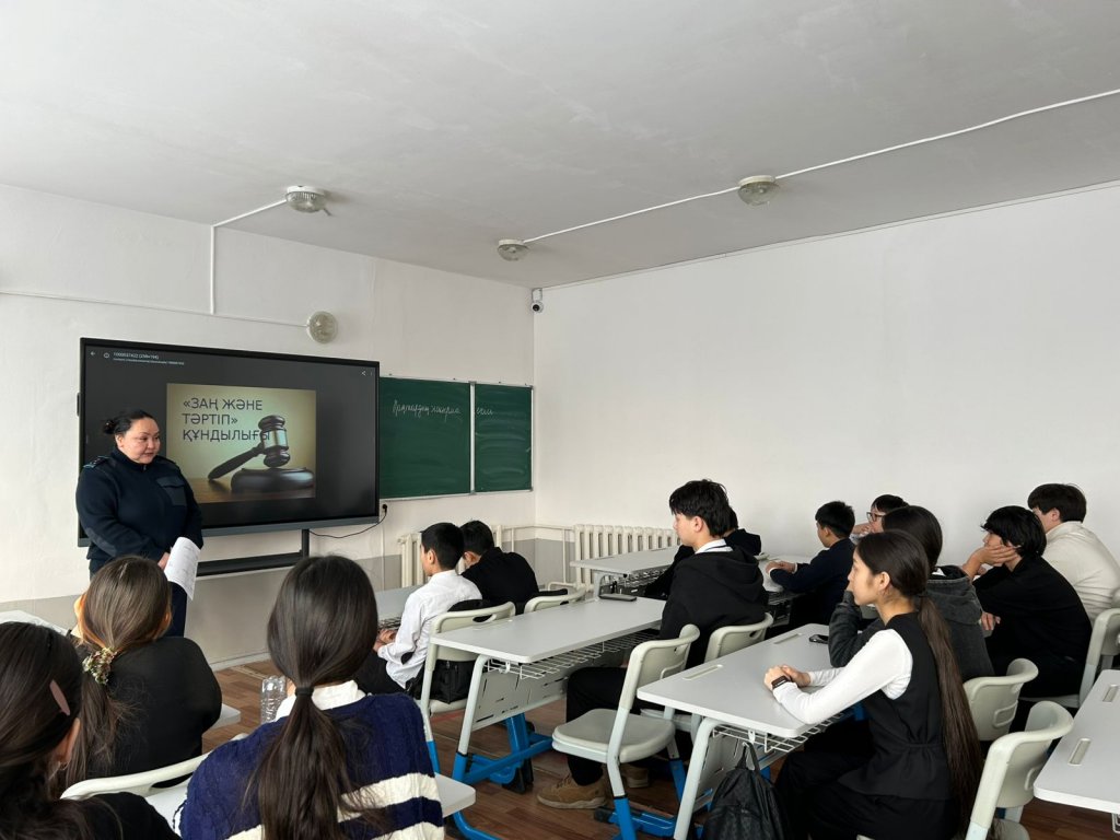 Кездесу барысында оқушыларға құқықтық тәртіп, жеке жауапкершілік және қоғамдағы мінез-құлық мәдениеті туралы маңызды мәліметтер берілді. Мұндай іс-шаралар оқушылардың саналы, тәртіпті әрі жауапты азамат болып қалыптасуына ықпал етеді.